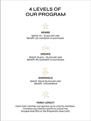 Combine your family's points to unlock the Groupie level (8%) or the Shopaholic (10%)